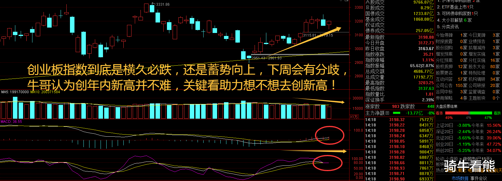创业板指数周五仍然在3200点附近震荡,短期指数明显回落,关注量化新规对微盘股的影响,整体行情还是机构资金出逃为主的盘面。尽管11月A股市场波动加剧,基金投顾却在逆势加仓A股资产。数据显示,11月基金投顾增配幅度最大的是A股资产。市场已提前布局跨年行情,机构投资者大概率会“抢跑”布局高景气赛道。接下来注意创业板指数能否在3200点之上稳住。