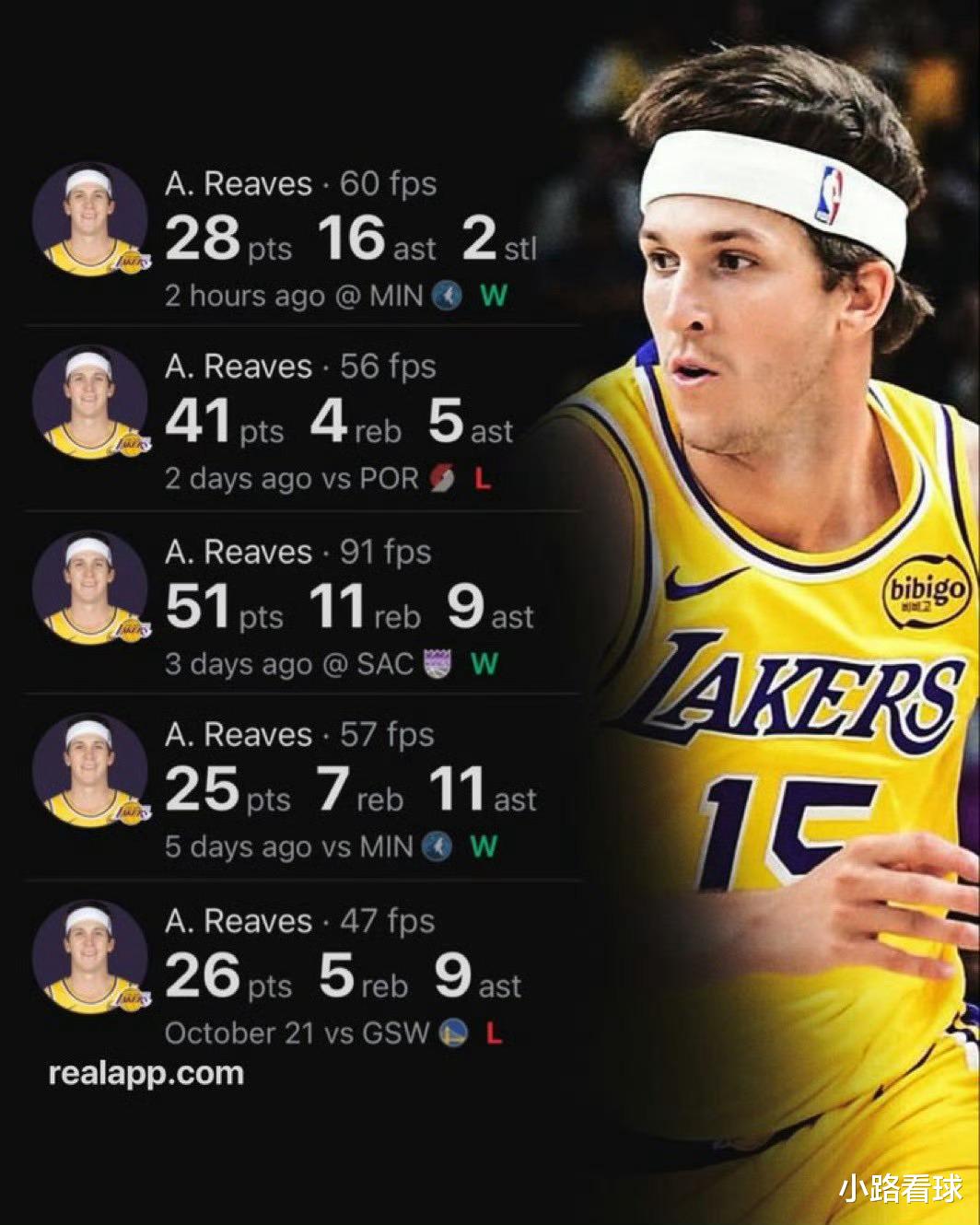 不仅如此,据统计,16次助攻创里夫斯本赛季单场助攻新高,赛季第二次单场助攻上双。还有,里夫斯成为湖人队史首次在赛季前5场得到至少150分50助攻的球员。赛季至今,里夫斯合计砍下171分50助攻,这充分说明了他不是那种只会持球单打的球员,而是擅长在适当的时候传球激活队友的球场大脑角色,这也是为什么很多人认为健康且阵容缺陷被弥补的湖人会很可怕,因为他们拥有詹姆斯,东契奇和里夫斯三位球场大脑,这在全联盟都是很奢侈的,上赛季他们被森林狼淘汰,更大原因主要是内线太差,三个持球手连喂饼都喂不出去,但现在不同了,因为湖人有艾顿了。