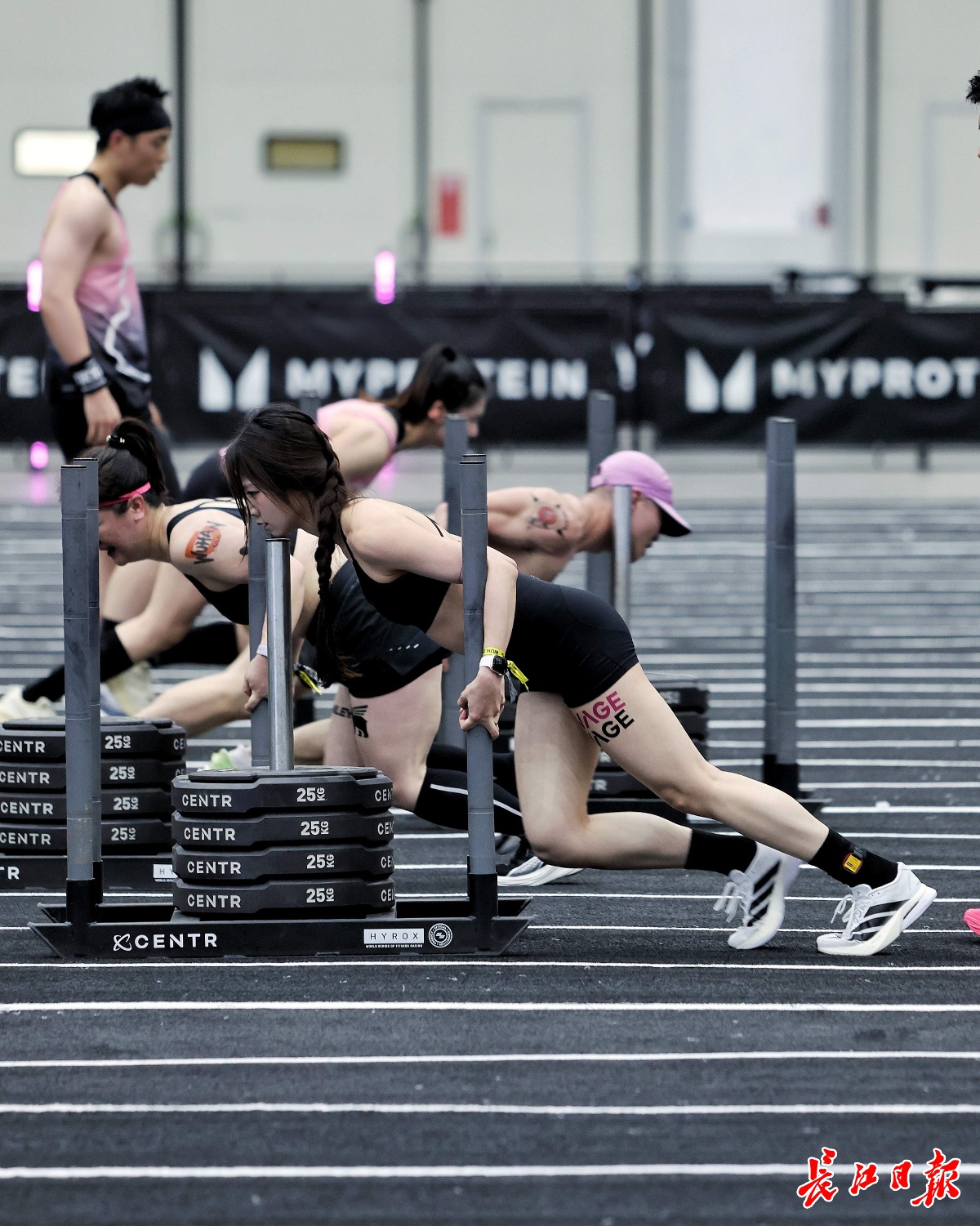 从事健身行业的王先生介绍,2024年HYROX进入中国后,参与人数迅速增长。目前,在武汉,一节HYROX主题团课收费接近百元,私教课更贵,多数学员备赛时间在半年到一年之间。他解释,由于跑步和力量项目交替进行,对心肺功能与肌肉力量均是考验,“选手需要比较全面的能力,这是一场体能综合大考”。正因如此,HYROX不设关门时间,完赛即胜利。如果单人参赛难度太大,还可以和队友接力完成,“相当于降低了门槛,让更多健身爱好者敢来尝试”。
