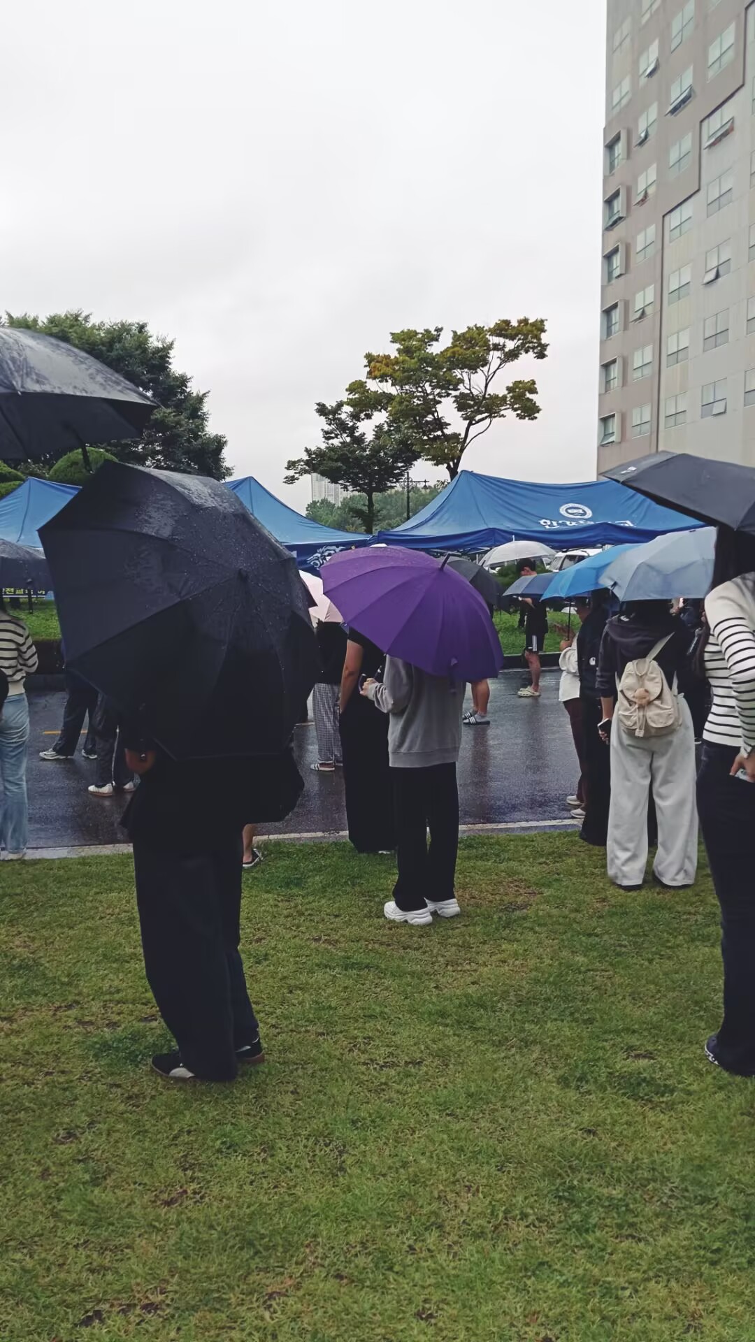 傍晚六点,我和同学们撑着伞,在雨幕中陆陆续续挪到楼下演习场。