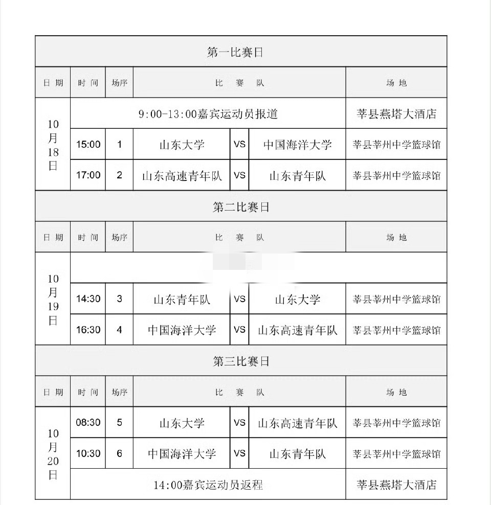 接下来就是热身赛的消息,鞠维松指导将带领山东全运男篮前往辽宁丹东,跟北京队、四川队和辽宁队,进行一系列的热身赛。比赛时间为10月17日—19日,三天三场比赛,强度也是不小,直播平台应该会在抖音,如果有别的免费平台直播,我会放在评论区。