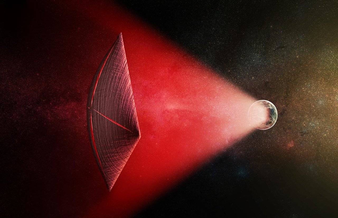 面对这片近在咫尺却又遥不可及的新世界,我们要想前往并非易事,不过科学家们正在构思前所未有的星际航行方案。其中最著名的当属突破摄星计划。该计划设想建造数千个名为“星芯片”的纳米级微型航天器,每个仅重几克,但集成了相机、光子推进器、导航和通信设备。它们将配备超材料制成的光帆。通过地球上的激光阵列发射出功率极高的激光束,聚焦在这些光帆上,在几分钟内将其加速到光速的20%。