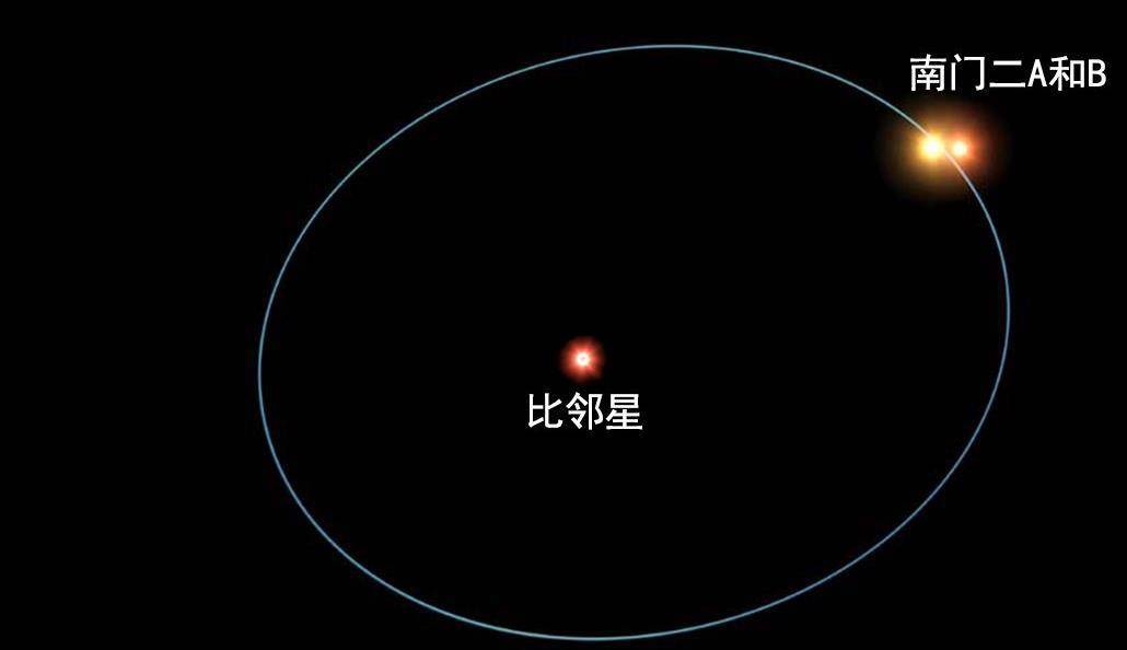 而在更远的外围则是南门二的第三颗恒星,这颗恒星就是我们最熟悉的比邻星,比邻星距离我们仅4.22光年,是一颗低质量的红矮星,这使得我们无法通过肉眼看到它,其质量只有太阳的八分之一,亮度更是暗弱到太阳的两万分之一。比邻星在一个极其遥远的轨道上围绕AB双星的质心运行,公转周期长达50万年以上。
