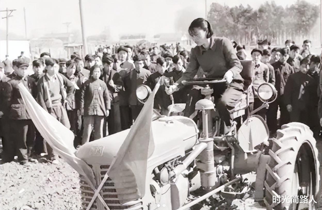 场边有个记者扛着相机,跟着机身移动,找好了角度,咔嚓一下按下快门,底片里,就这么留住了一个画面,一个扎着辫子的女机手,坐在东方红上,身子往前探,眼神盯着前面那片地。