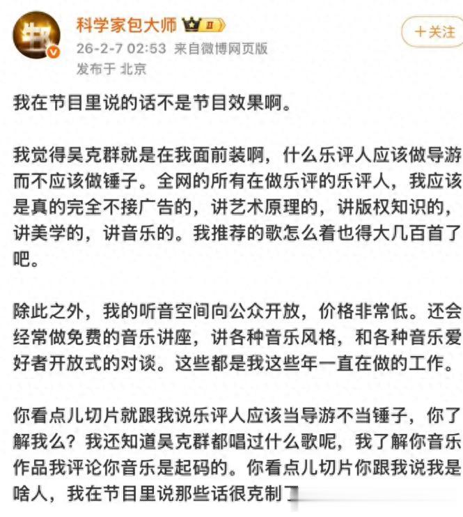 粉丝提问:身为乐评人之一,如何看待评价乐评人“梁源”炮轰吴克群“就是装”?