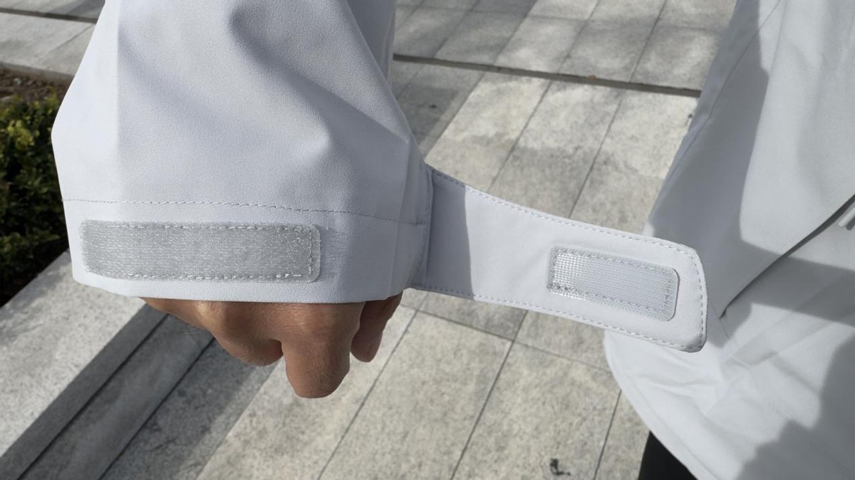 隐藏式拉链袋的位置设计也很巧妙——位于前胸两侧,开口朝向斜上方,既方便伸手取用物品,又不会在运动时被背包肩带挤压;可调节下摆的抽绳在内部,拉动时不会勾到外界杂物,收紧后能防止冷风从腰部灌入。此外,袖口的魔术贴宽度足够,粘贴后不会松动,且边缘做了圆角处理,不会磨到手腕皮肤,这些“不起眼”的细节,恰恰能在长时间户外活动中提升舒适度。