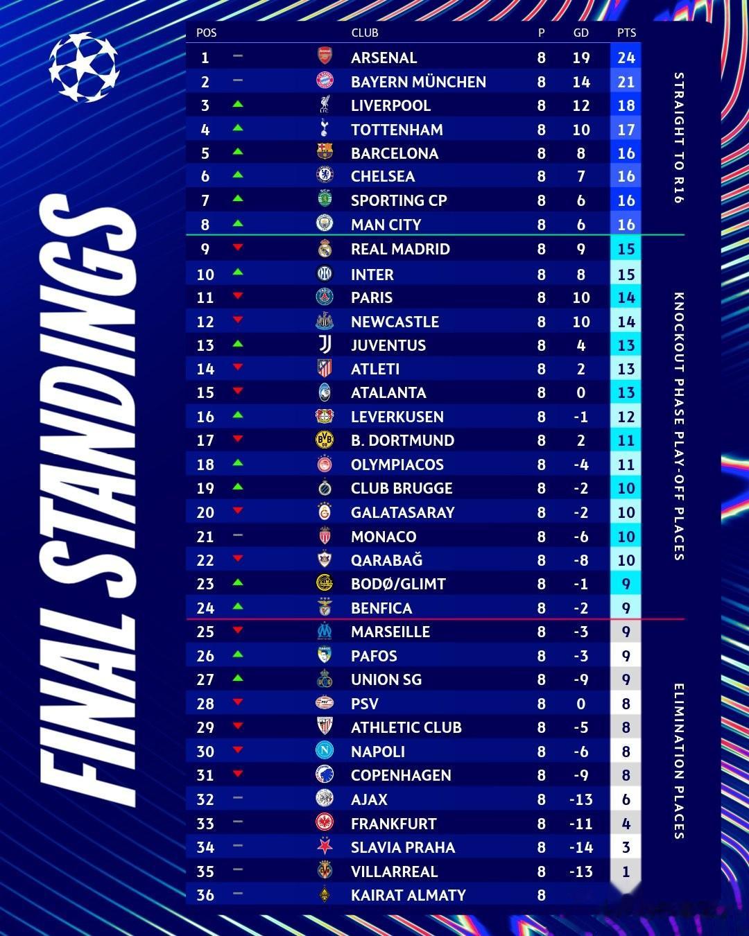 1月29日,2025-26赛季欧冠联赛阶段八轮战罢。四支本赛季欧冠新军中,只有来自挪威的博德闪耀晋级下一阶段,保留了冲击16强的希望。