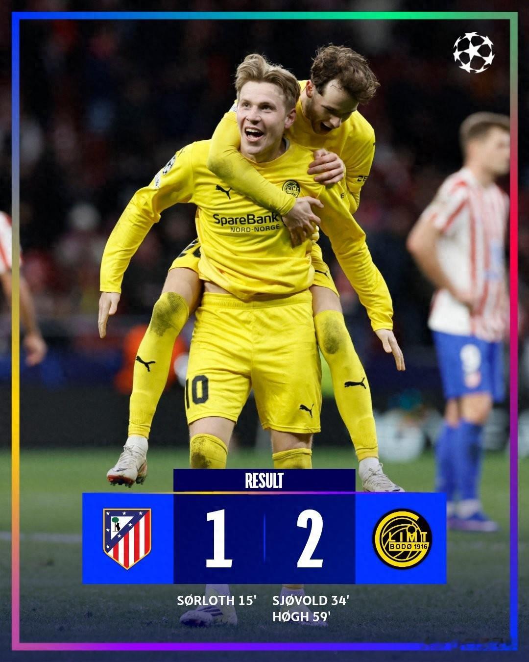 博德闪耀最后三轮狂揽7分,平多特蒙德,连克曼城和马德里竞技,成功晋级淘汰赛附加赛。他们在联赛阶段的战绩为2胜3平3负,积9分,在所有9分球队中净胜球最多(-1个)。