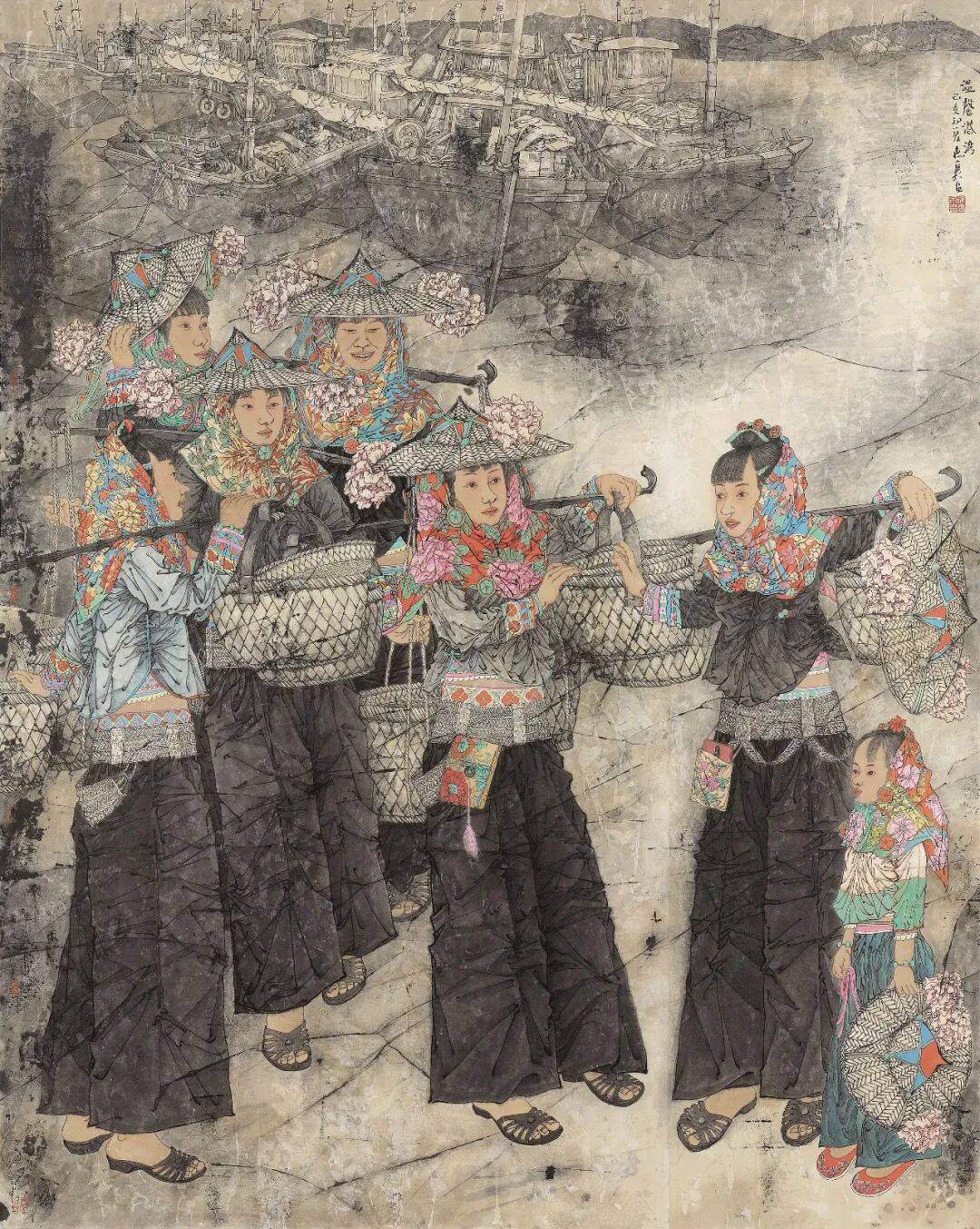 《千户苗寨的苗族姑娘》 53cm×38cm 2025年