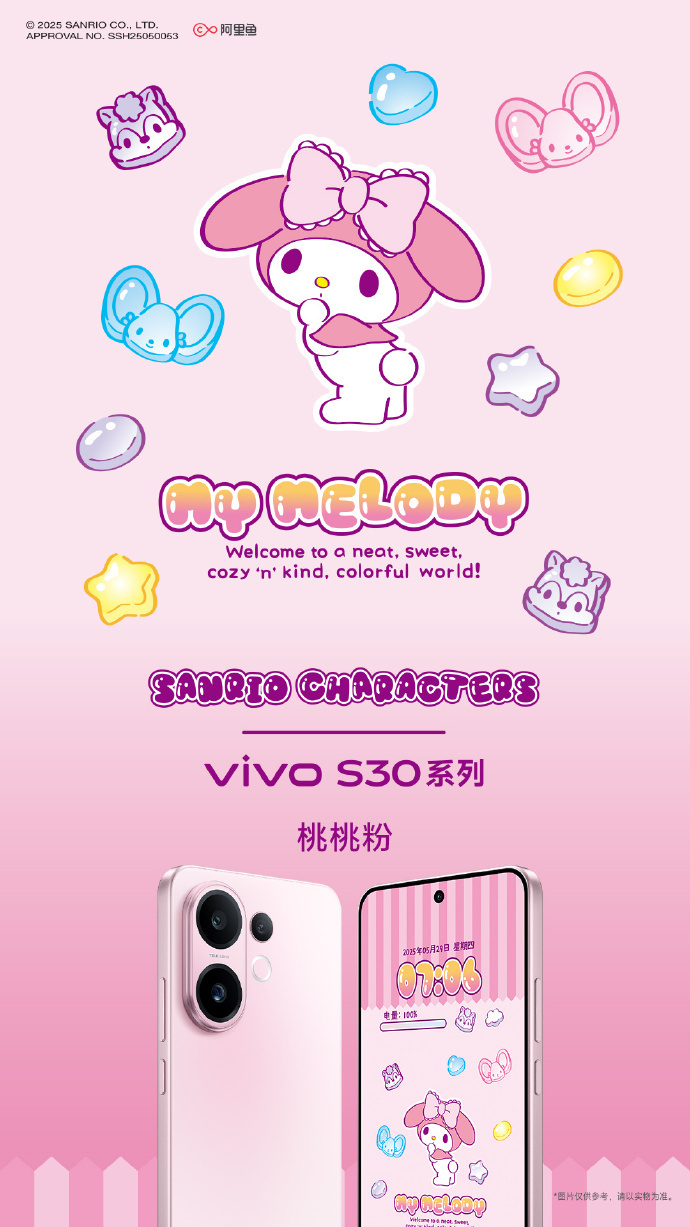 在视觉设计方面,vivo这次的确玩出了“新花样”。根据官方微博释出的宣传图,S30系列主打“多彩小直屏”,延续了S系列一贯的轻薄理念,但这次在色彩美学上更大胆。包括酷莓粉、桃桃粉、薄荷青、柠檬黄、可可黑在内的五种配色,可谓是“果味十足”,与三丽鸥家族的跨界联名更是激起了不少用户的收藏欲望,甜妹、酷girl、元气少年都能找到对应风格。