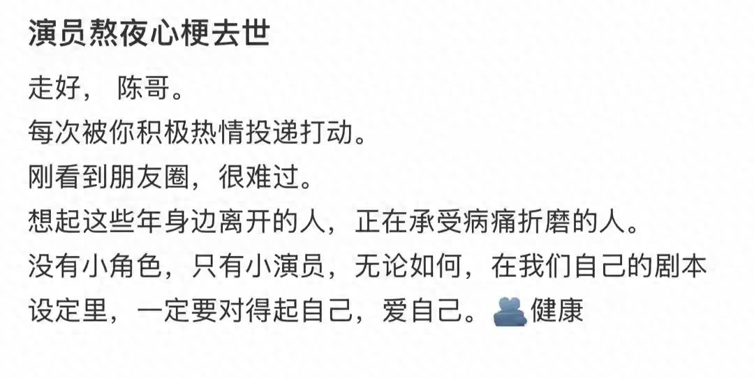 有经纪人发文,对已经去世的演员陈宇表示了悼念。