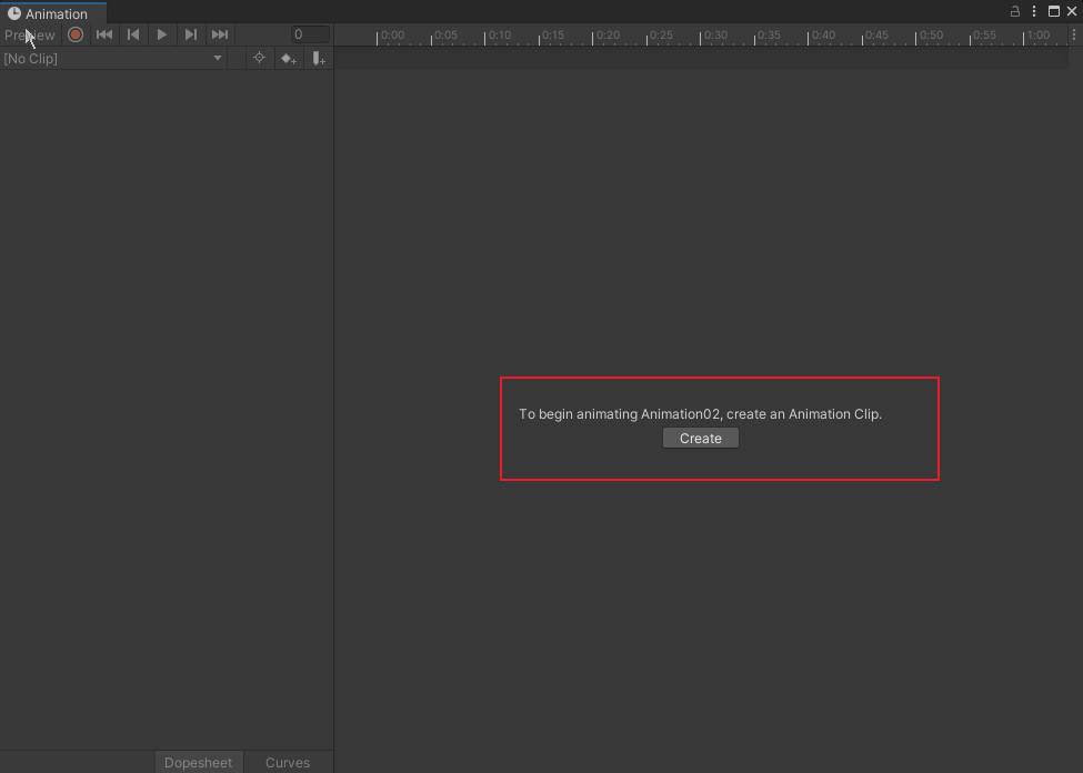在 Assets 资源管理中右键 ->Create->Animation,然后双击该文件打开 Animation 编辑器,点击 Create 保存到指定位置,文件后缀.anim。