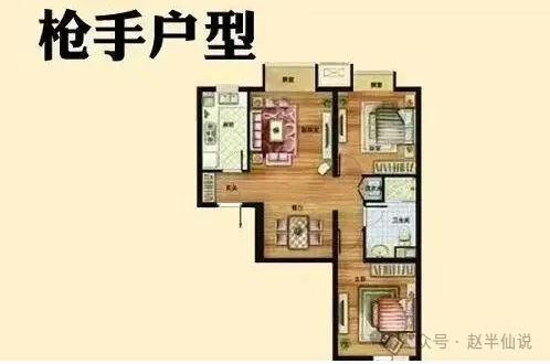 他掏出户型图我一看就懂了:狭长体型,一头大一头小,中间还凹一块,活脱脱一把手枪——客厅是枪管,卧室在扳机位,厨卫挤在弹匣那凹处。去年开春搬进去,图便宜,结果把霉运请进了门。