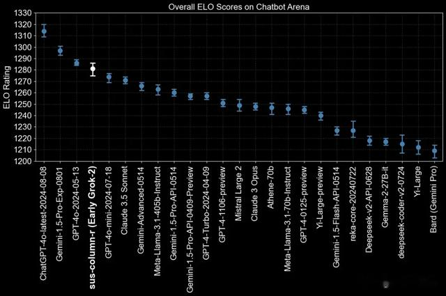 Grok-2 性能大 PK随着 xAI 将 Grok-2 的早期版本「sus-column-r」放入到 Chatbot Arena中,我们看到了它与其他流行开闭源模型的性能比较。