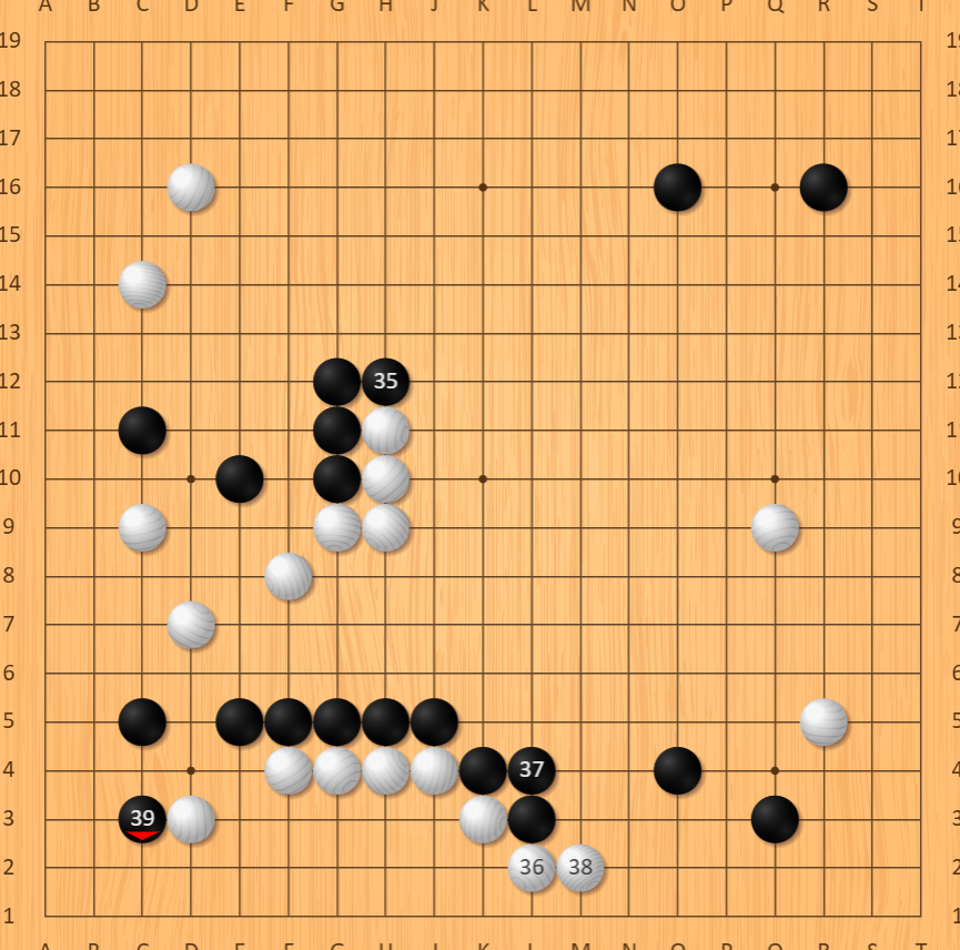 实战中,党毅飞执黑,本盘对局从最后整体上分析是黑棋的完胜好局,于是第一人申真谞九段的惨败之局。在前半盘激战中,黑棋抢到坐下实地和中腹外势之后局势便朝着自己有利的方向发展。尤其是随后左上和右上的势力稳步转为实地之后,局面优势倍增!