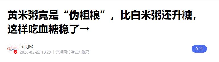 光明网《黄米粥竟是“伪粗粮”,比白米粥还升糖,这样吃血糖稳了》