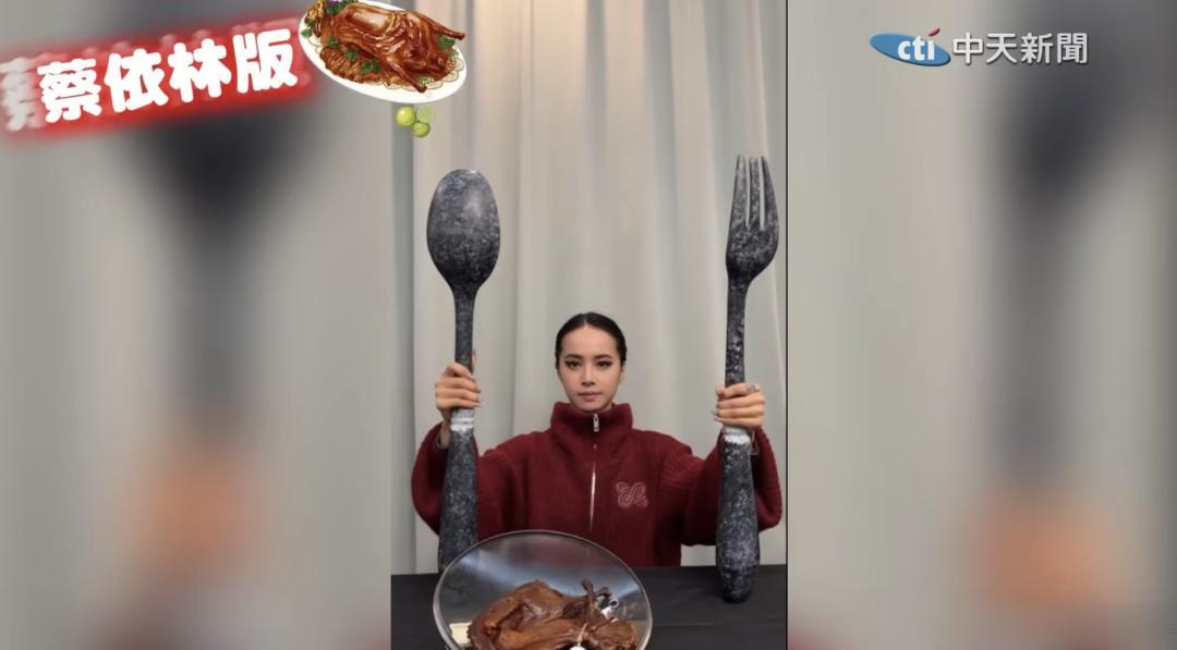 热梗很快席卷台湾,台湾艺人蔡依林也加入二创。她在视频中推开屋门,询问那句经典台词,结果刚开口就忍不住笑场,随后自嘲:“我是在长沙演唱会后台等吃酱板鸭的蔡依林。”最后拿着大刀叉,摆出开吃的架势,逗乐无数网友。