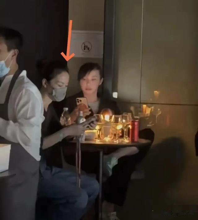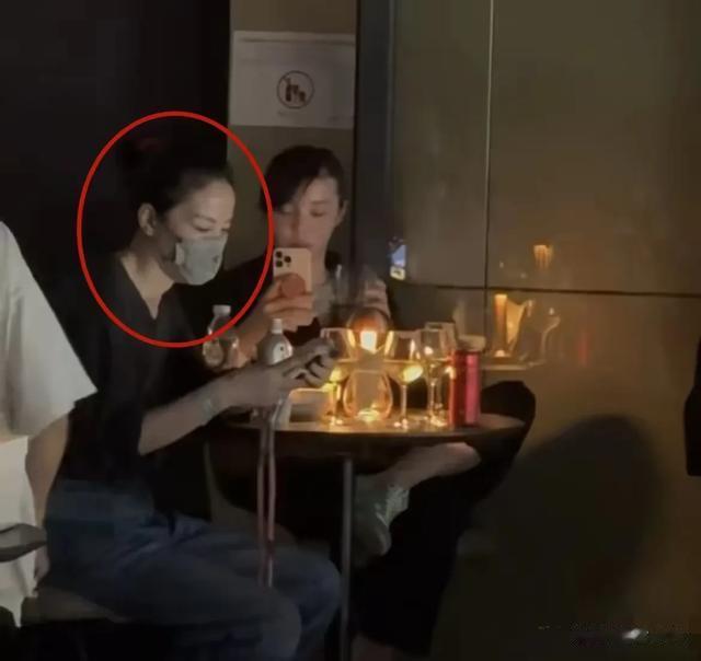 王菲依然很低调,戴着口罩,和友人坐在角落里的一张小桌子旁刷着手机。