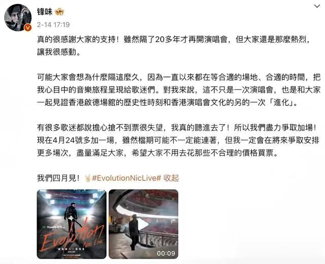 英皇高层霍汶希也在社交平台发文表示很多人问她要演唱会门票,但她称“谢霆锋自己都抢不到”。