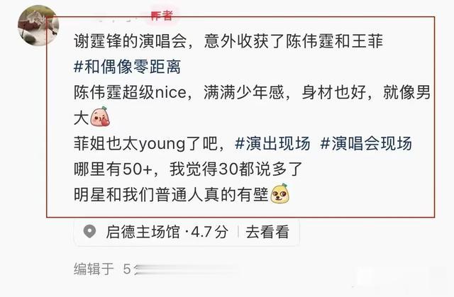 4月25日,有人发帖称在演唱会上看到了王菲。