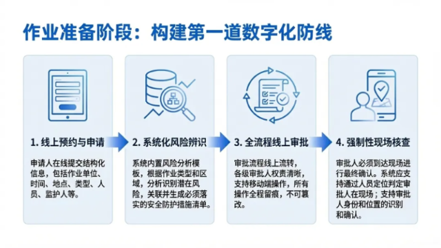 公司紧跟标准导向,打造的智能安全管理系统深度契合AQ 3064.1总则的基础要求,确立统一技术架构与安全防护体系;聚焦AQ 3064.2特殊作业管理核心,实现动火、受限空间等高风险作业“四个现代化”升级——作业票证电子化、作业现场可视化、审批流程化、风险管控规范化,构建从线上预约、风险辨识、全流程审批、现场核查,到作业过程监控、闭环验收、数据分析的全生命周期管理闭环。通过视频实时联动、环境动态监测、人员在岗监督、关键异常告警等技术手段,将作业过程从“被动人防”推向“主动技防”,有效规避脱岗、串岗、资质不符、气体超标等安全隐患。