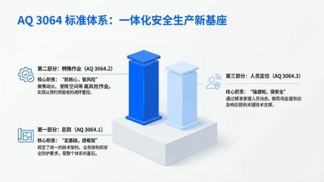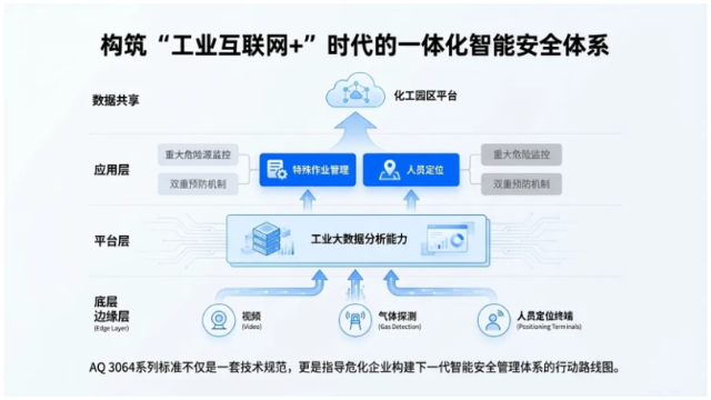 传统危化安全生产模式长期面临信息孤岛、流程繁琐、依赖人防、风险滞后等痛点,安全管理效率与精准度难以满足行业高质量发展需求。AQ 3064系列标准的出台,从总则、特殊作业、人员定位三大核心维度搭建起一体化安全生产新基座,为行业变革提供了明确的技术与业务框架。