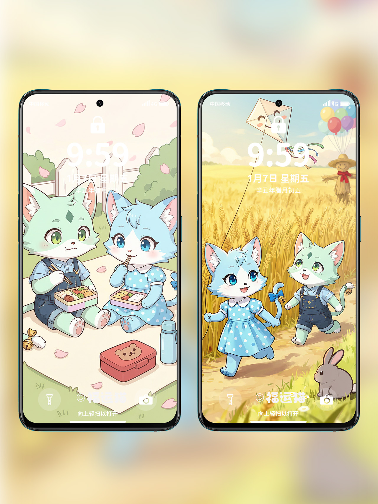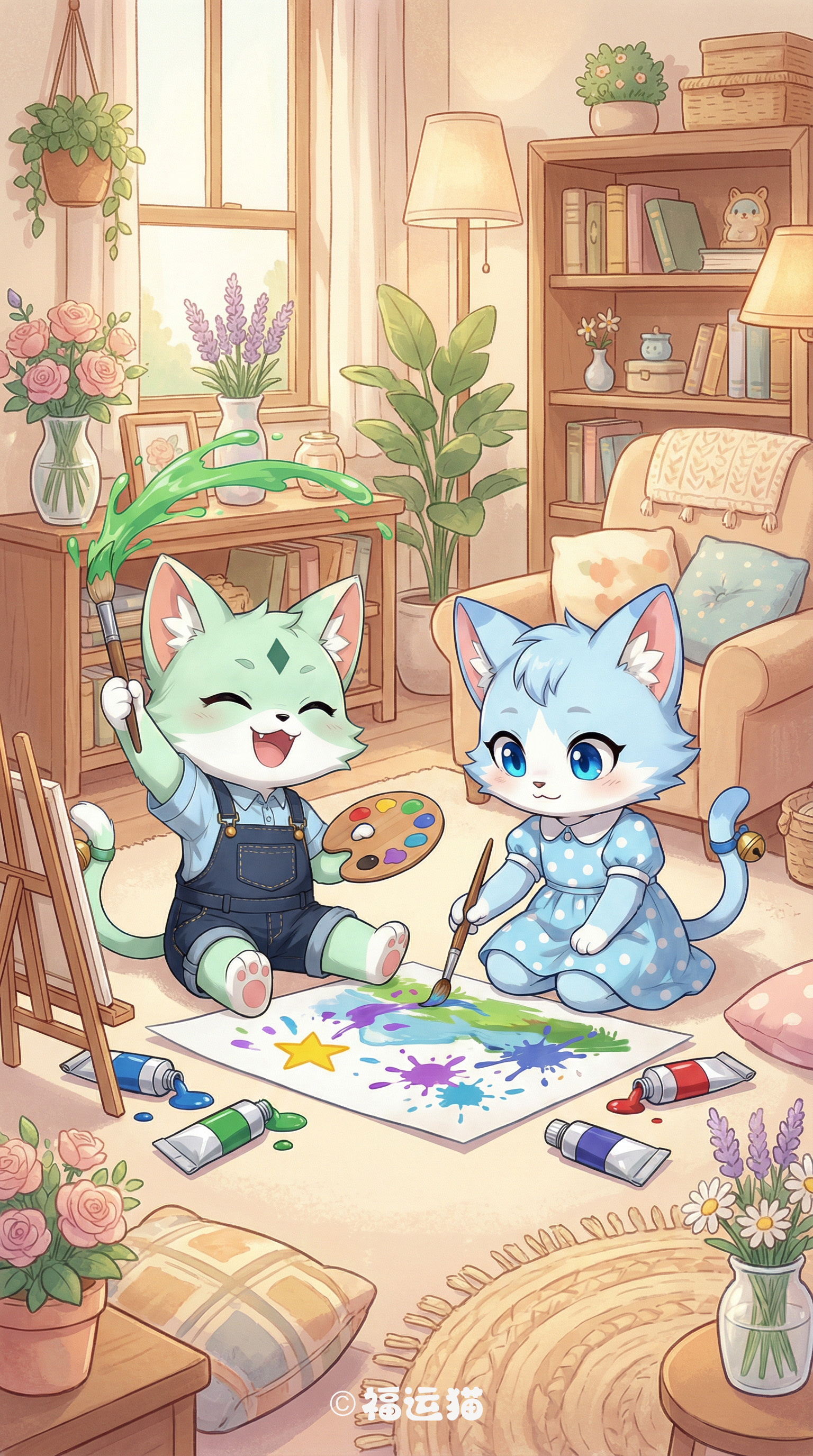 蓝猫蔚珊细心安静,绿猫森泽温和包容。