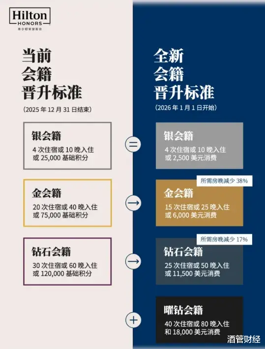 卷疯的酒店会员体系总体来看,本次希尔顿会员体系调整主要有三点: