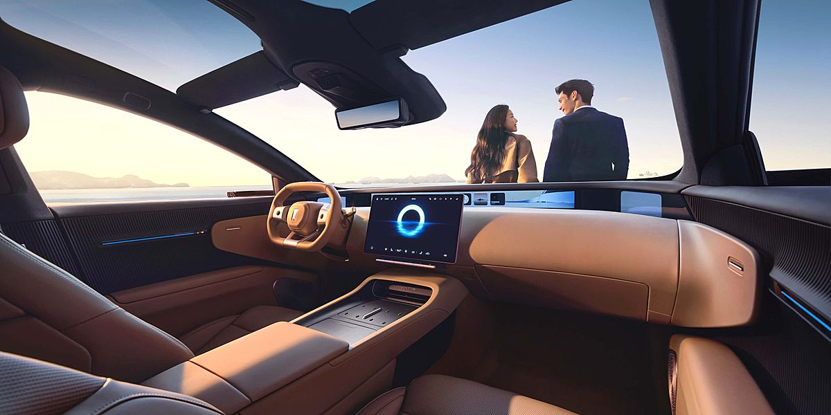 内饰新增 “岩棕” 配色,高级真皮与天然桦木饰板搭配,35.4 英寸 4K 一体远端屏贯穿主副驾,集成车速、智驾状态等信息,支持自定义卡片编辑;15.6 英寸中控屏搭载鸿蒙座舱HarmonySpace 5,支持四区域语音识别、手势控制与面部识别,后排 16 英寸悬浮天幕屏可 60°-100° 翻转,配合 25 扬声器英国之宝音响(2016W 输出)打造沉浸式体验。