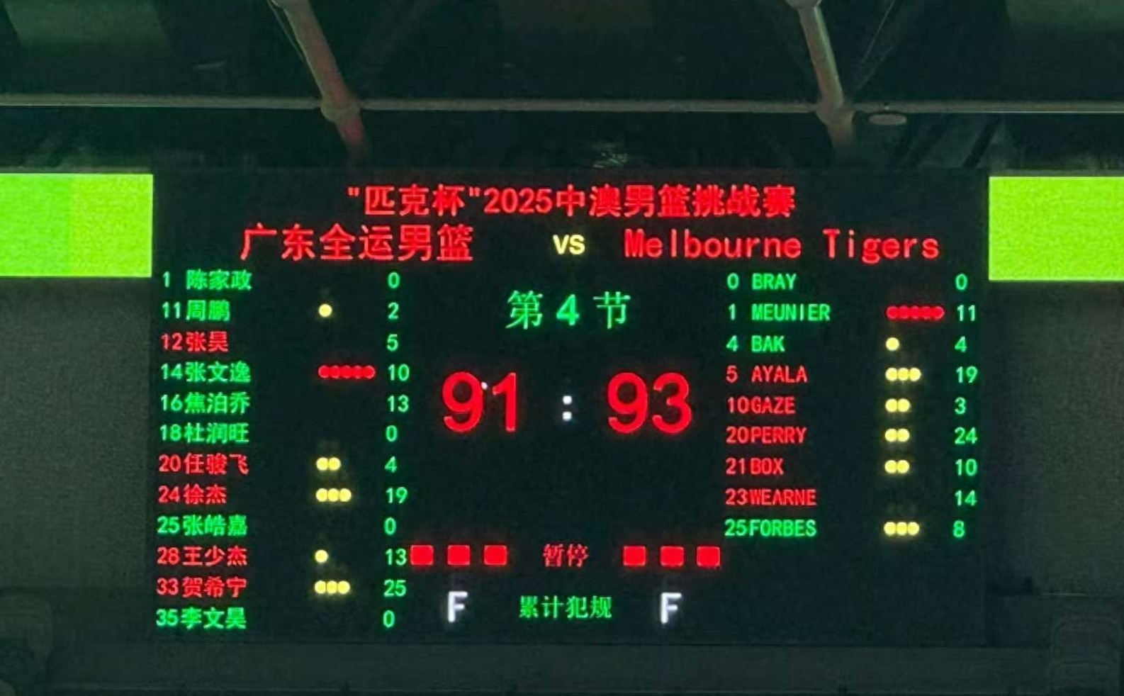 2025中澳国际篮球挑战赛展开第二场比赛争夺。广东全运会男篮再次与墨尔本老虎队比赛,上一场双方76比76打平。这场广东队非常渴望胜利,毕竟这场在深圳比赛,是广东队的主场,最终广东全运会男篮以91比93惜败给墨尔本老虎队,徐杰再度拿下19分,这场比赛赛后传来三个消息,打出2个不争事实。