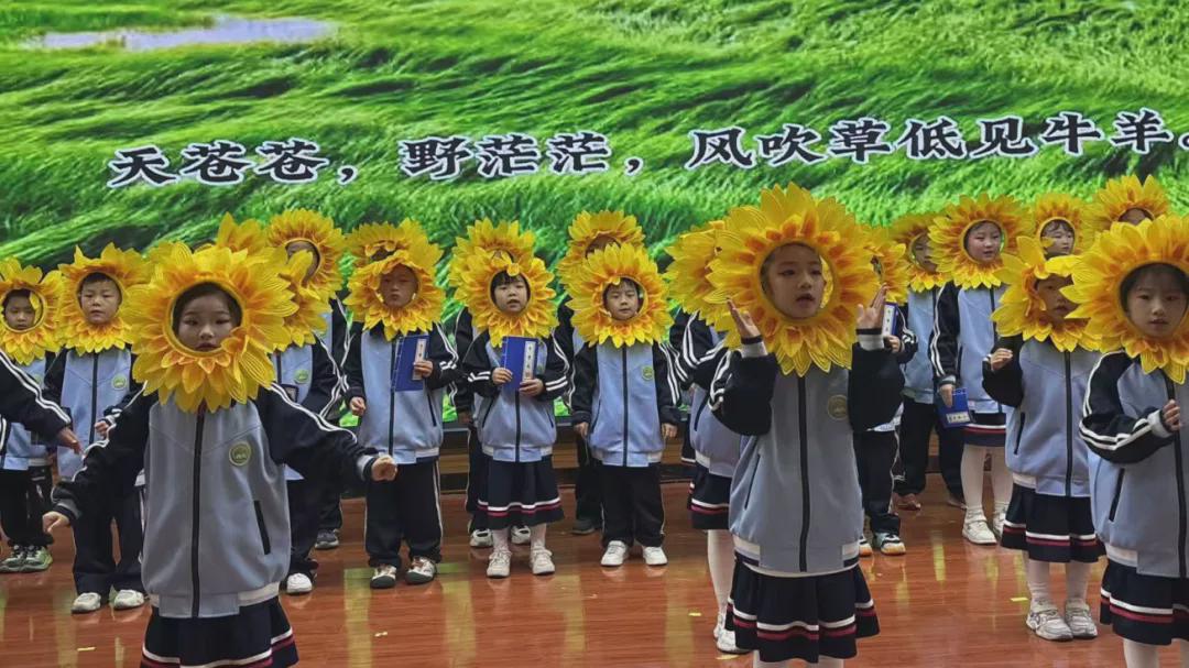 系列活动中,各年级结合学生特点,开展了形式多样、精彩纷呈的展示活动,让经典在校园中流转。低年级的童谣传唱清脆悦耳,一(2)班的《春晓》、二(2)班的《朝代歌》、二(3)班的《童谣传唱上春山》,稚嫩的童声如露珠滑过叶尖,唤醒了一颗颗纯真童心;三年级的亲子诵读温情满满,三(1)班的《万家灯火读书时》、三(3)班的《做最好的自己》、三(4)班的《爱,就像风一样》,父母与孩子的轻声相和,让书香中充满了亲情的暖意;四年级的经典诵读意境悠远,《跟着课本读中国》《上春山》《三月桃花水》等作品,带领学生在文字中领略山河之美、文化之韵;五年级的课本剧表演生动鲜活,《红楼春趣》《猴王出世》《武松打虎》等经典篇目被搬上舞台,书中人物有了呼吸与灵魂,让学生在沉浸式体验中感受文字的魅力。