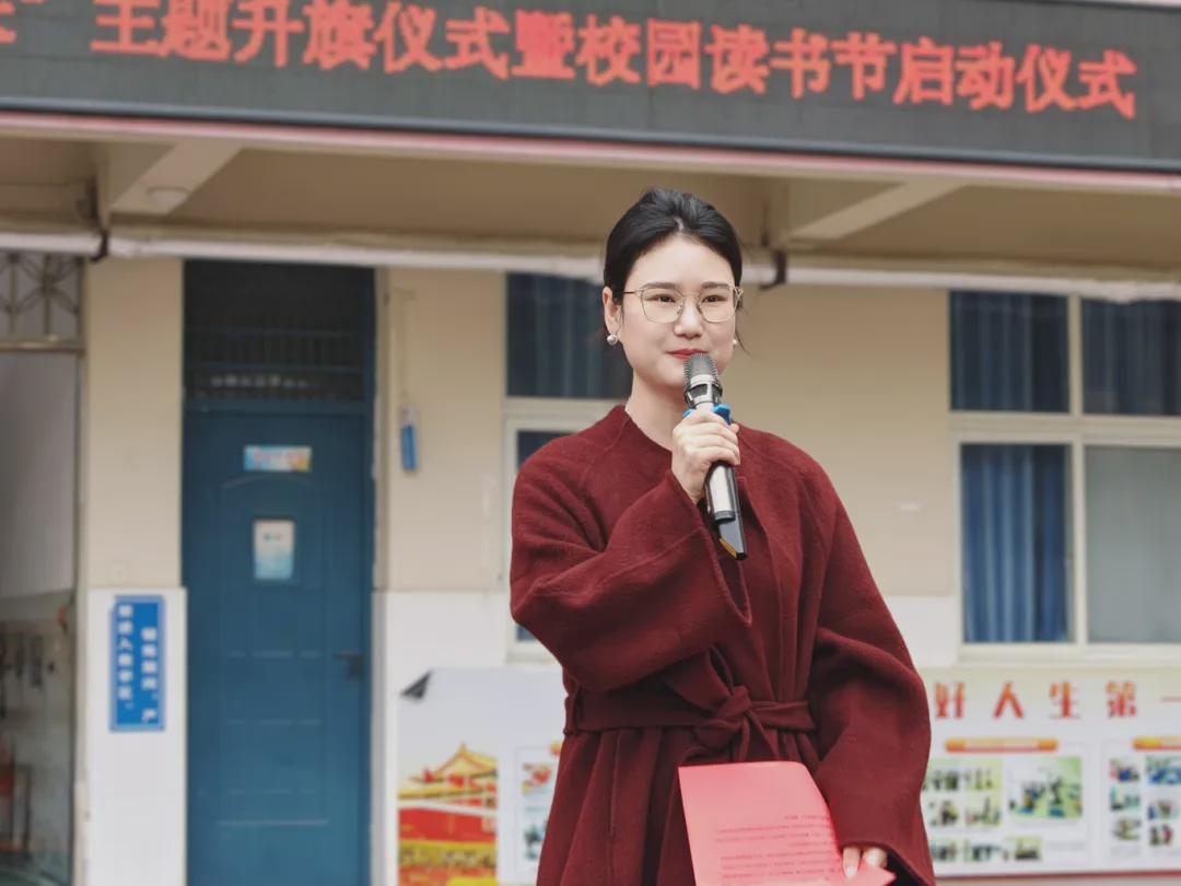 活动以一场庄重的主题升旗仪式拉开序幕。四月芳菲时节,全校师生齐聚操场,冯校长向全体师生发出“多读书、读好书、善读书”的倡议,温情的话语如春风化雨,滋润着每一位师生的心田。随后,学生代表满奕彤带领全体学生庄严宣誓,“以书为友、以读为乐”的誓言铿锵有力,既是少年们对阅读的热爱,更是对未来的郑重承诺。