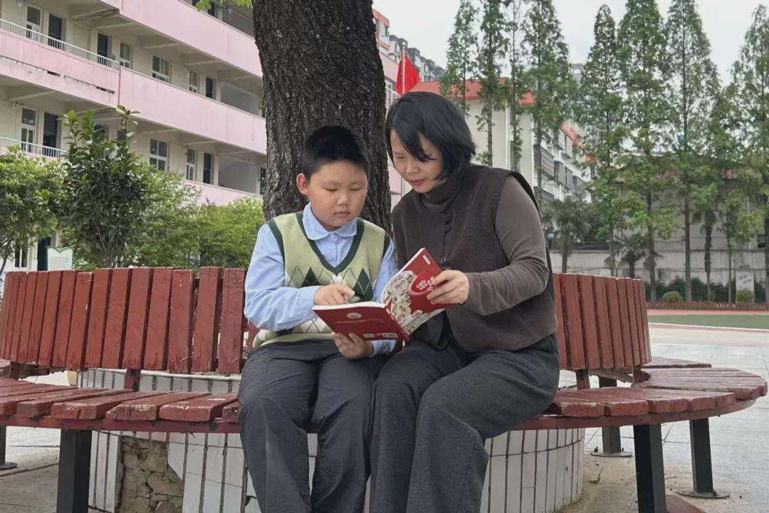 阅读不止于舞台,更融入校园的每一个角落。课间的榕树下、午后的阅读长廊、阳光洒落的窗台边,随处可见孩子们捧书静读的身影,阅读已成为校园里最动人的风景。各班级在语文老师的带领下开展班级共读活动,一本书让五十多颗心紧紧相依,一间教室因共读而变得辽阔;亲子共读活动中,阅读打卡、家庭阅读日记等形式,让灯下并肩读书的夜晚,成为知识传递与爱意流淌的温馨时刻,也让家校联系因书香更加紧密。