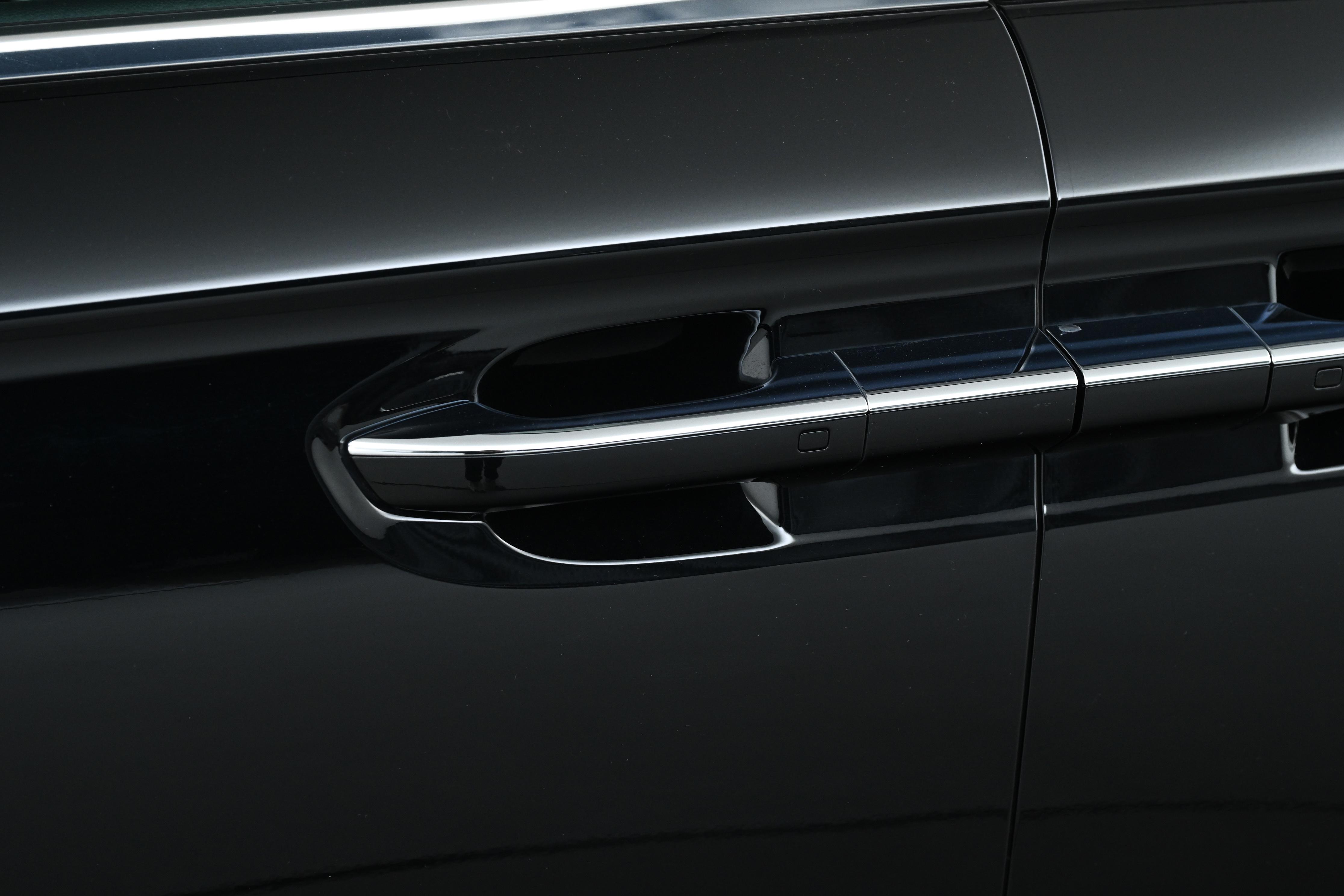车身侧面,整车的线条造型平整且线条顺畅,后排车窗采用的隐私玻璃设计以及车尾的绕流板也让该车有着悬浮式的车顶,从而让该车侧面看上去更显协调,车窗加入了的贯穿式银色镀铬以及车侧下方的镀铬条也起到了不错的点缀效果。而车尾部分的造型立体方正,分段式的熏黑尾灯组以及中间的字母标识也很好的提升了车尾的整体辨识度。