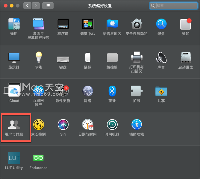 1、首先进入“系统偏好设置”的 “用户与群组”选项。
