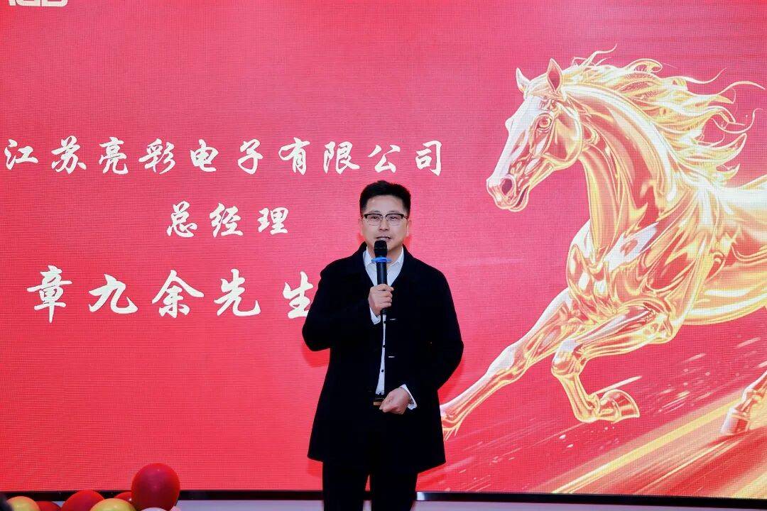 领航聚合力,新程共前行。江苏亮彩电子有限公司总经理章总、利亚德集团销售副总裁郭总、新北区工商联副主席(兼龙虎塘街道商会会长、常荣电器董事长)匡先生分别上台致辞,为本次年会送上期许与祝福,为亮彩新一年的发展鼓劲扬帆。