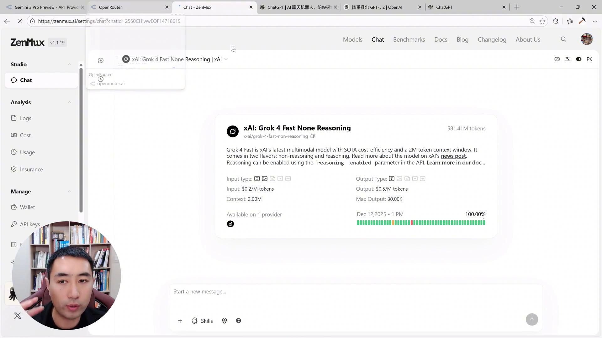 ·第二种使用方式其实和open router是比较类似的,它是zomax,在zomax的网站同样也是提供了三个模型,5.2、5.2chat和5.2pro,它们的价格和open router的价格也是一样的,果然贵的东西价格都是一样的,都很贵。