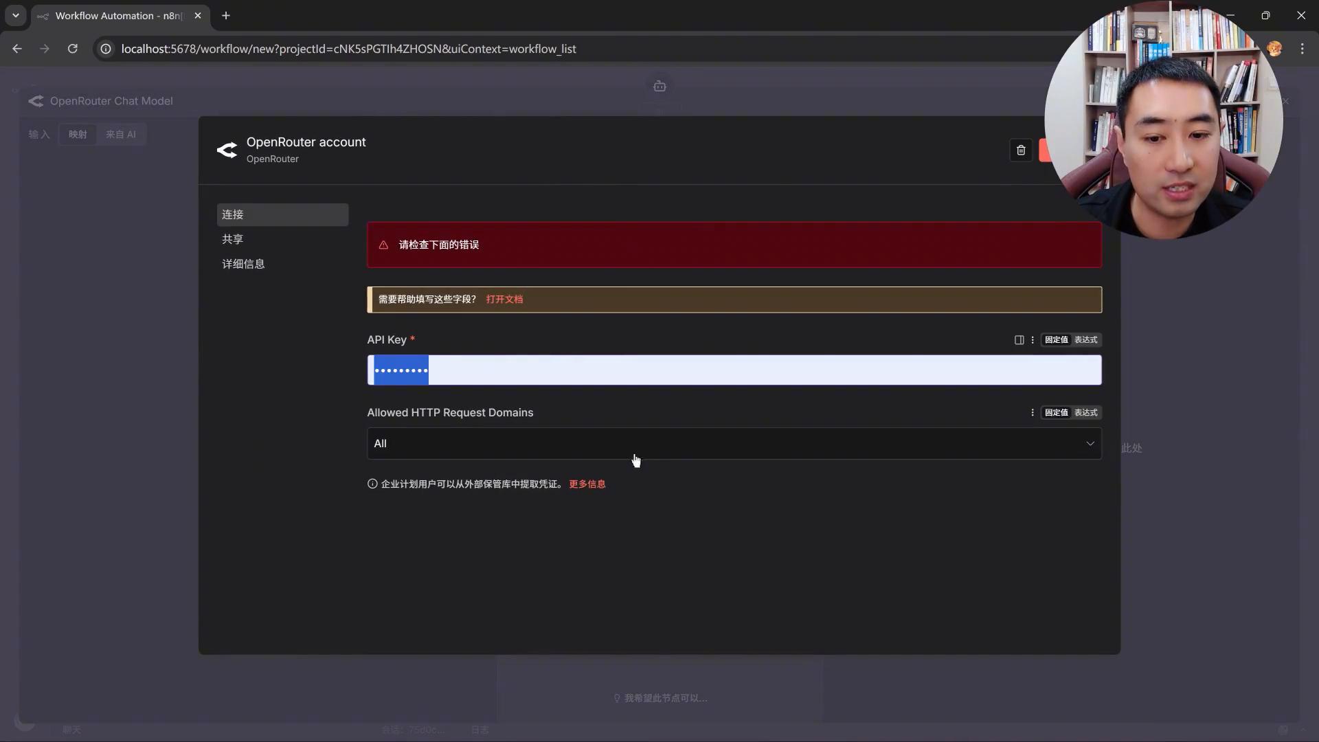 ·选择完open router之后是要去添加open router的k的,添加了meal之后才能去使用的,第一次的时候是没有meal的。这时候就来到open router的网站,需要登录,登录完了之后去点击左上角的密钥,在密钥里面去复制open router提供的密钥。