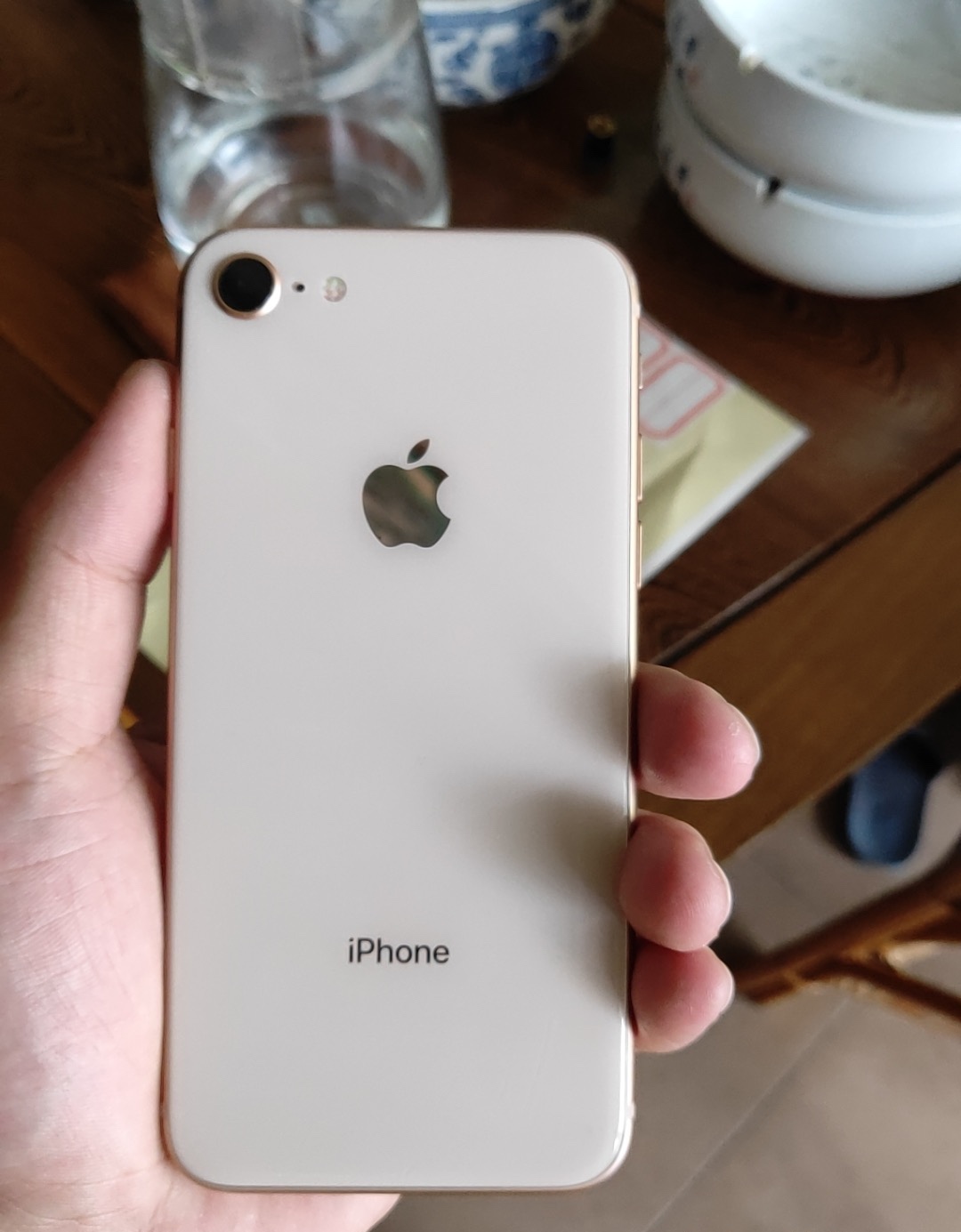 通过图片,我们可以看到这是台金色的苹果8,从手机背面来看,的确跟新机器很相似,没有发现有任何使用过的痕迹