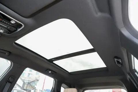 车身侧面线条流畅,车顶标配行李架,不仅好看,还能装东西。要是长途旅行带行李箱、帐篷,加个行李框就行。车门是平开门,开启角度合适,上下车方便。19 英寸铝合金轮毂配 235/55 R18 轮胎,轮胎宽度和车身比例协调,开起来稳,侧面看着也不臃肿。车尾设计简洁,后雨刷是标配,雨天能及时清掉后挡风玻璃的雨水,保证后方视野。舒适型还有可开启全景天窗,面积不小,打开后车内亮堂,春秋季开窗通风,视野也开阔,坐着舒服。