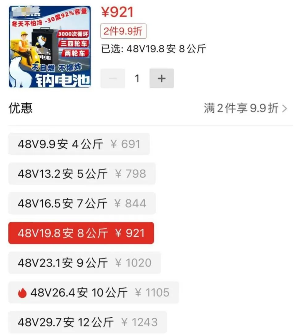 33Ah的钠电池:2000块左右差价能到1200多
