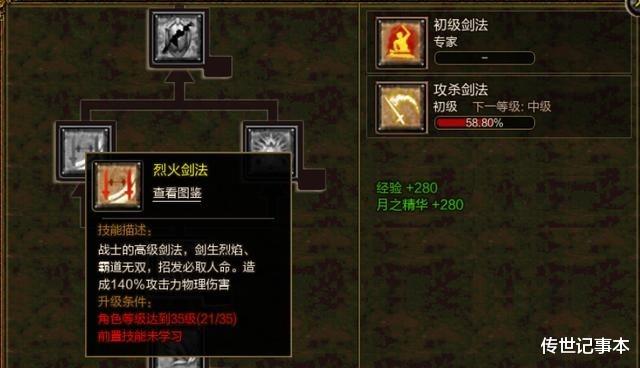 所以奉劝各位新手战士,与其到后期再换号重练,不如一开始就把路子走对。烈火剑法不仅是战士职业的标配,更是一个真正战士的灵魂所在。当你能一刀999秒杀对手的时候,那才叫真正的”刀刀烈火,杀气冲天”!