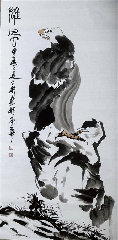 王新的水墨创作始终秉持“始于古而不拘泥于古”的理念。他笔下的小写意花鸟,既承袭了“意在笔先,笔随心动的传统美学精髓,又通过奔放的笔触与通透的墨法,赋予作品强烈的视觉张力。在《墨竹》《雄鹰》等作品中,他以“师其意而不师其迹”的创作方式,将文人画的笔墨程式转化为具有当代性的视觉语言,其水墨作品见长以疏密有致的线条重构空间关系,既保留了中国画“计白当黑”的哲学意蕴,又通过色彩的大胆叠加,实现了传统题材的现代性突围。这种对传统技法的娴熟驾驭,与先锋派艺术“形式革新”的诉求形成巧妙呼应,使作品在古朴中透露出前卫的气息。