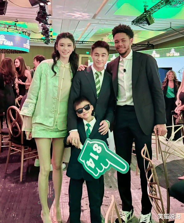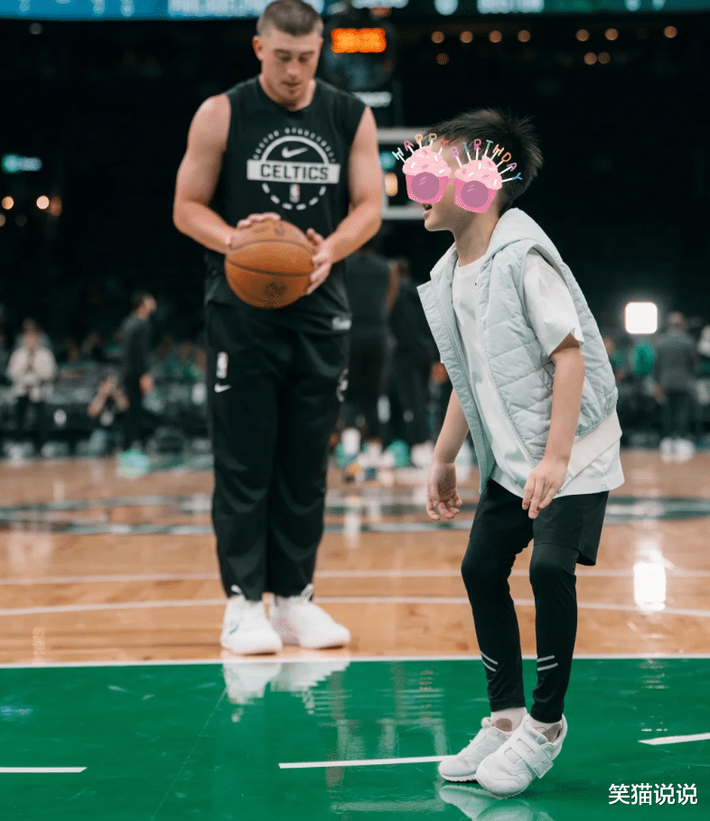 在篮球现场的大屏幕上还亮出了为何广燊庆贺生日的字幕,不得不说,这个庆贺方式真的很用心!除此之外,奚梦瑶何猷君带着儿子何广燊出席了晚宴,并且与球星Simons合影,成功追星。