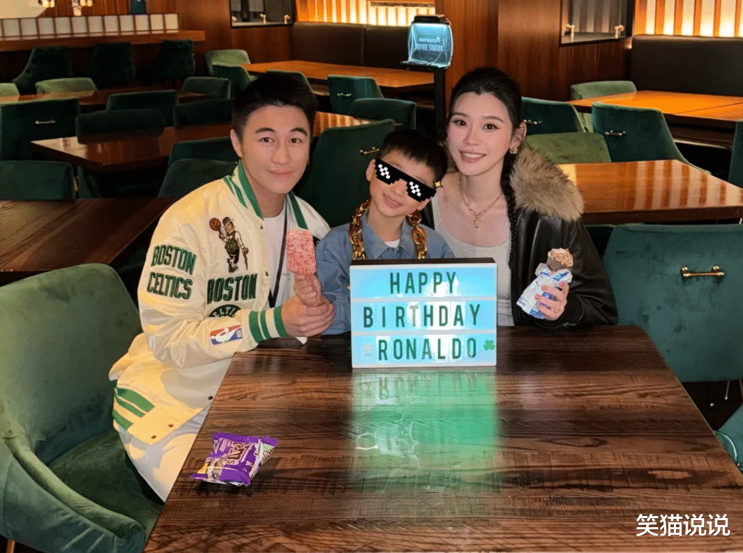 奚梦瑶还晒出了她与何猷君带着儿子就餐时的合照,在餐桌上的卡牌上面还写着happy birthday Ronaldo的字眼。