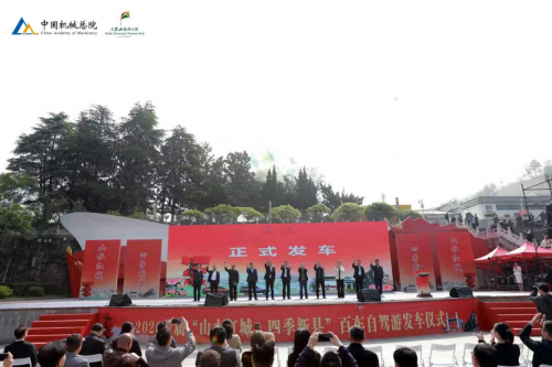 发车仪式上,中国机械总院院务工作部副部长戴成、中国旅游集团投资和资产管理有限公司副总经理程鸿先后致辞,新县县委书记李晓亮为车队领队授旗。