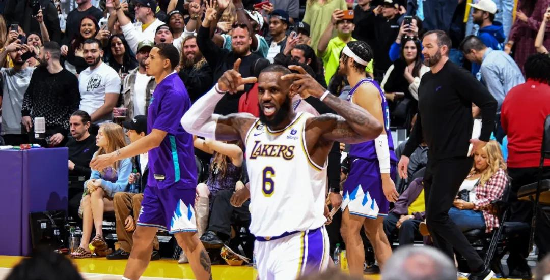 这个阶段,一直是队友为老詹戴皇冠造势,再比如2021年11月24日,詹姆斯爆砍39分,助湖人战胜步行者,他自己依旧在做霸王步,队友布拉德利迫不及待为他再次戴上皇冠。