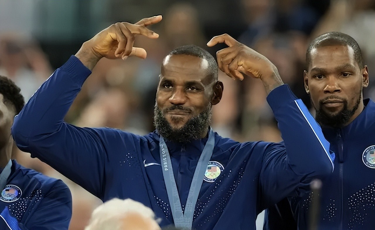 2024年巴黎奥运,对阵巴西队第三节,詹姆斯被对方肘到眼睛,返回更衣室缝了4针。当他从更衣室回来时,美国队已领先到32分,此时人群突然沸腾,詹姆斯以为是为他欢呼,便在板凳席做出了加冕皇冠的动作。但实际是本届4枚游泳金牌得主,法国小将莱昂·马尔尚入场了,当马尔尚向观众致意时,詹姆斯回头看到,才反应过来误会了。