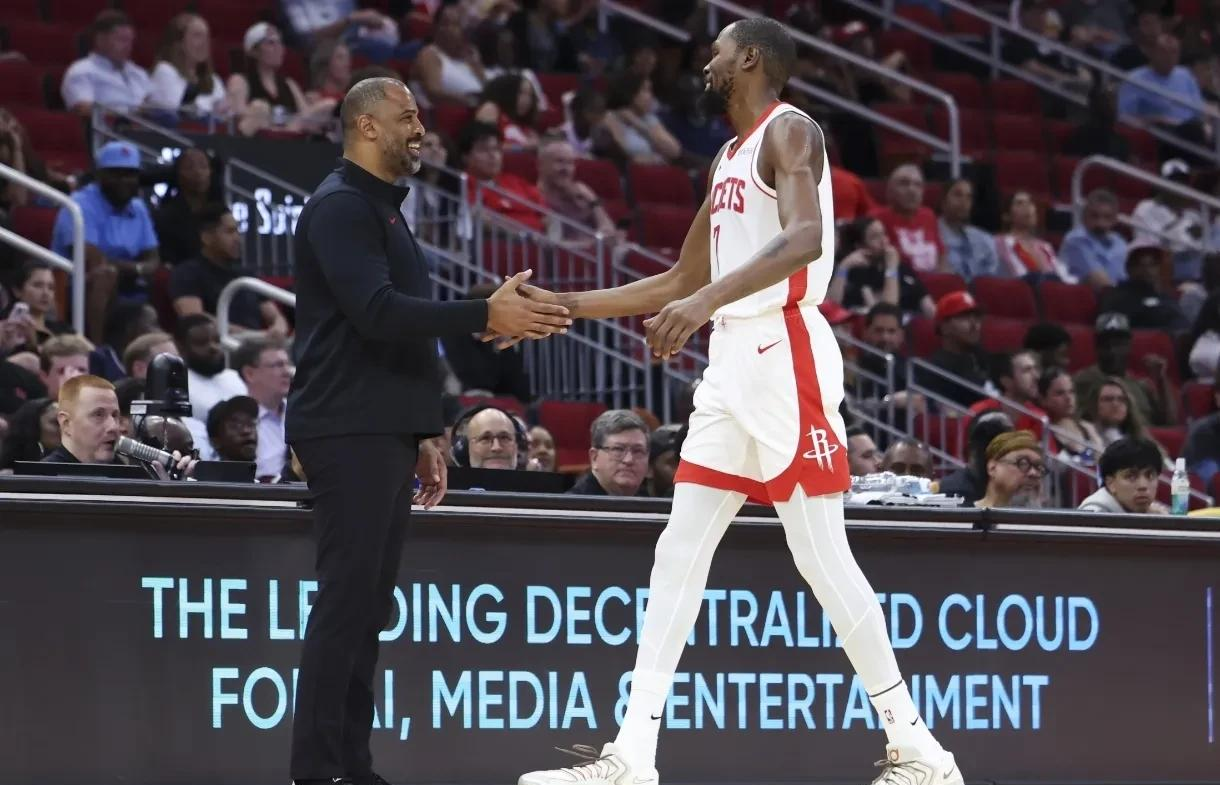 火箭:杜兰特、史密斯、申京、奥科吉、阿门。