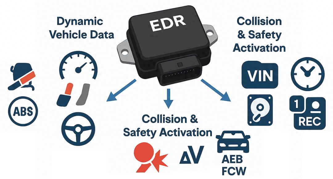 根据GB39732-2020汽车事件数据记录系统是由一个或多个车载电子模块构成,具备监测、采集并记录碰撞事件发生前、发生时和发生后车辆及乘员保护系统数据功能的装置或系统。它不同于行车记录仪的影像记录,专注于车辆运行核心参数的“数字存档”。在劳斯莱斯闪灵事故中EDR就像一位沉默的黑匣子记录着碰撞前几秒的车速、刹车状态、方向盘转角、碰撞瞬间的加速度变化以及碰撞后的车辆状态。